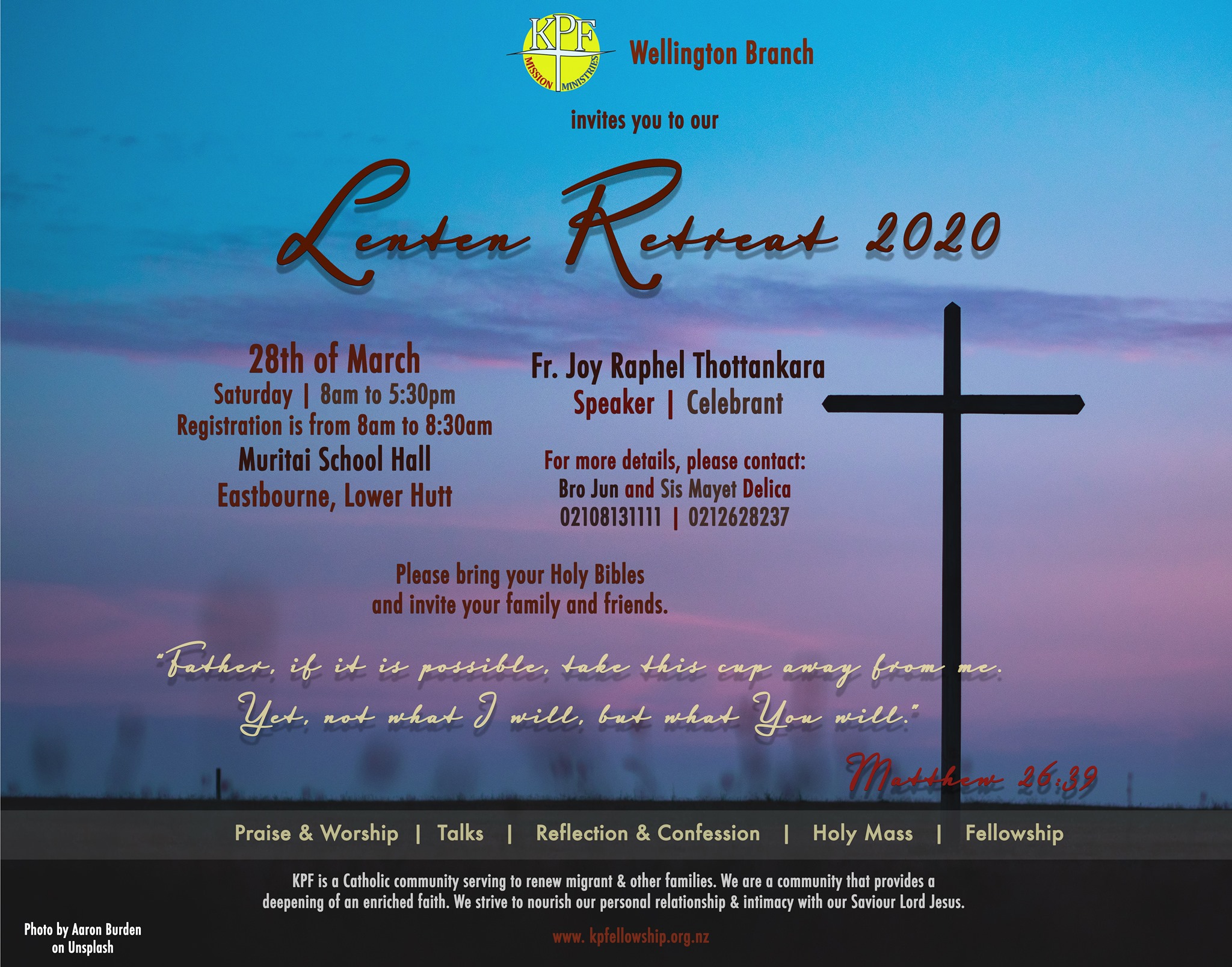 Annual Lenten Retreat on 28 March in Wellington joeyibarra02/03/202010/03/2020Uncategorized Post navigation PreviousNext Share this: stories to others and be a witnessTweetLike Loading...