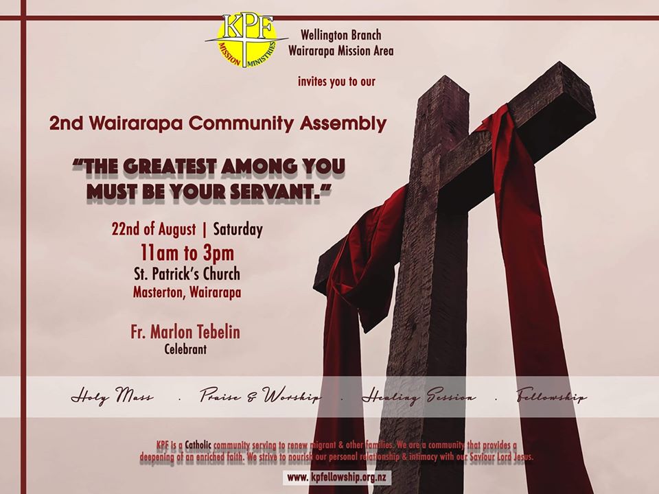 You are invited to a mass, praise & worship and a fellowship on 22 August in Wairarapa joeyibarra19/08/2020Uncategorized Post navigation PreviousNext Share this: stories to others and be a witnessTweetLike Loading...
