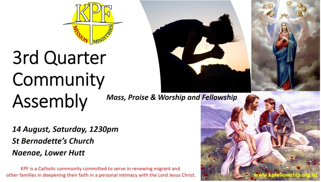 Mass, Praise & Worship and Fellowship in Wellington on 14 August joeyibarra06/08/2021Uncategorized Post navigation PreviousNext Share this: stories to others and be a witnessTweetLike Loading...