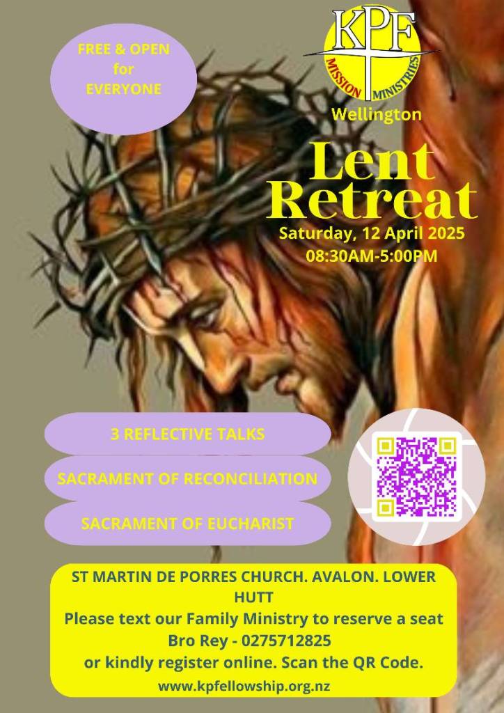Annual Lenten Retreat in Wellington on 12 April joeyibarra20/03/202517/04/2025Uncategorized Post navigation PreviousNext Share this: stories to others and be a witnessTweetLike Loading...