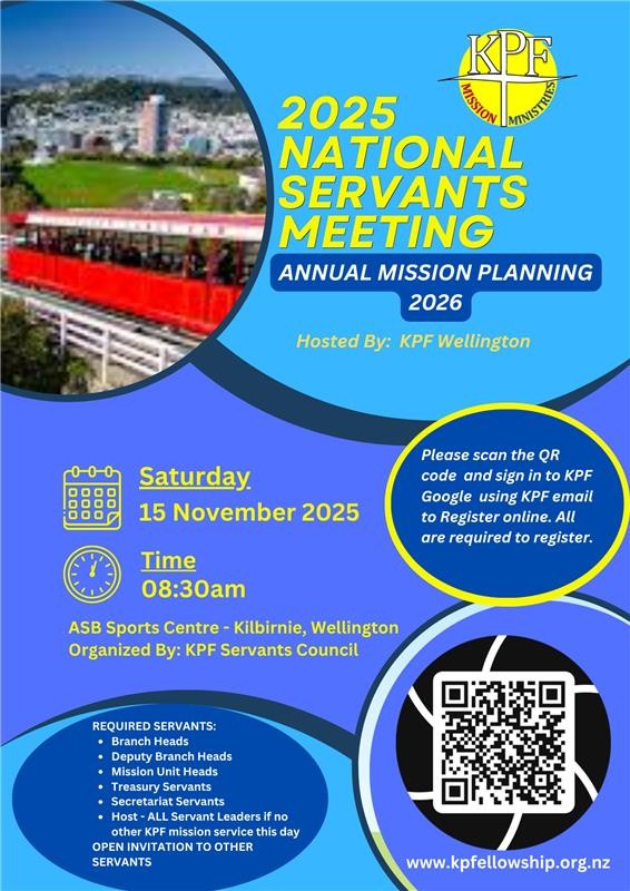 National Servants Meeting – Annual Mission Planning in Wellington on 15 November joeyibarra09/10/2025Uncategorized Post navigation PreviousNext Share this: stories to others and be a witnessTweetLike Loading...