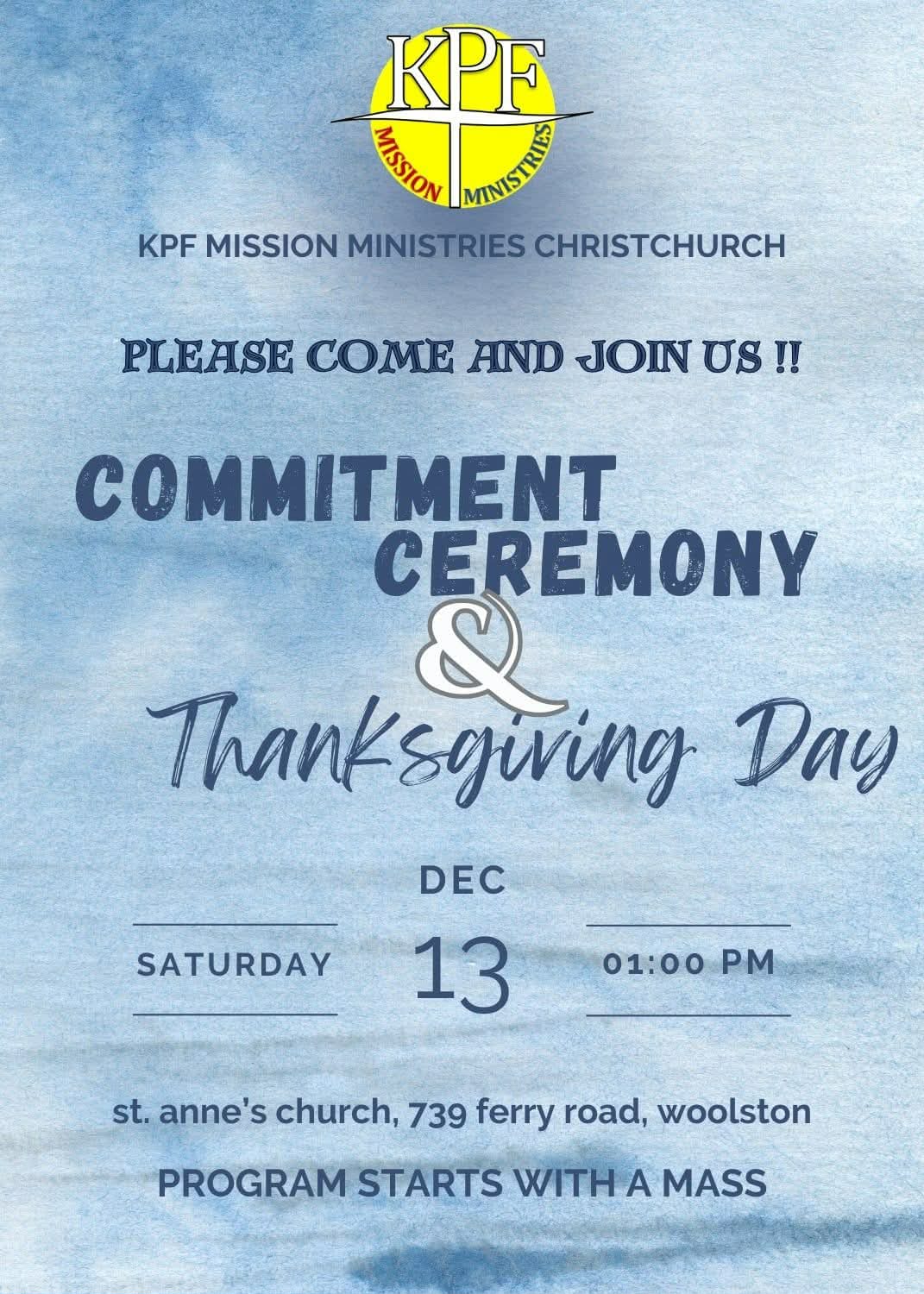 Commitment Ceremony and Thanksgiving in Christchurch on 13 December joeyibarra05/12/2025Uncategorized Post navigation PreviousNext Share this: stories to others and be a witnessTweetLike Loading...